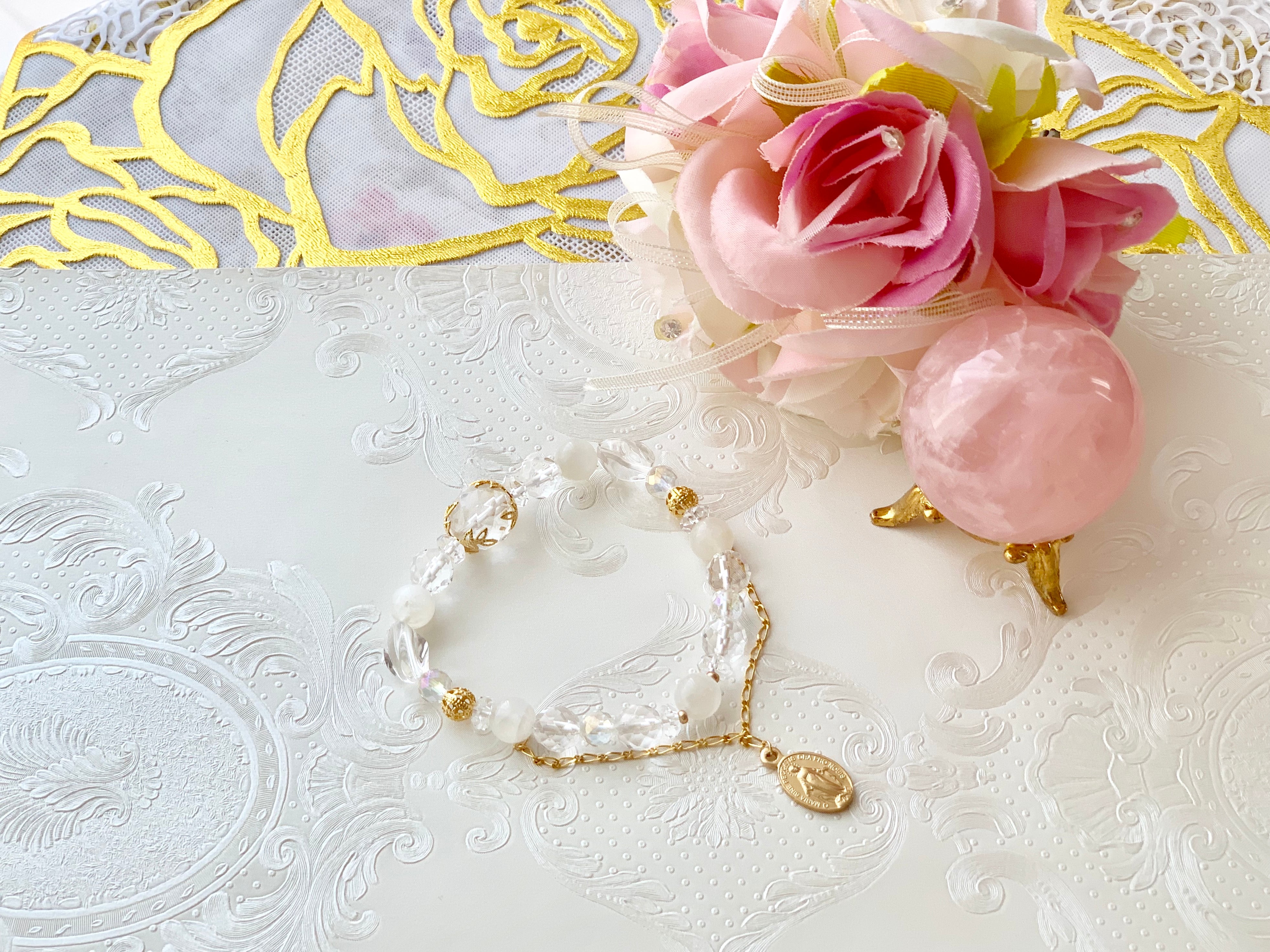 パワーストーン ブレスレット クリスタルクォーツ ムーンストーン マリアブレスレット 14KGF 15.5㎝